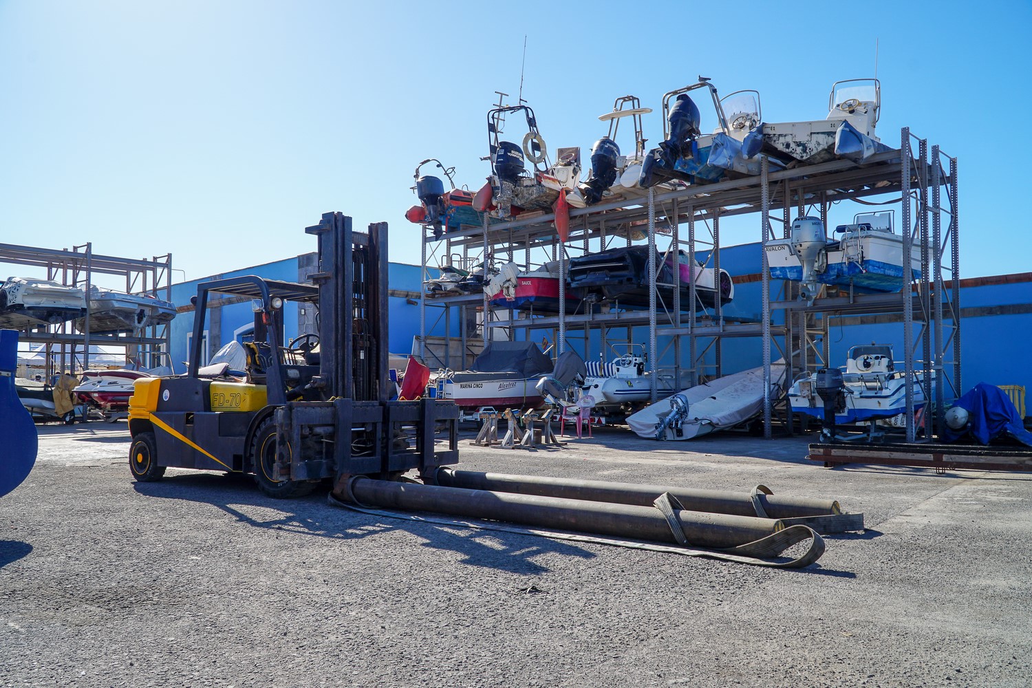 - Varadero con maquinaria para el izado de embarcaciones.